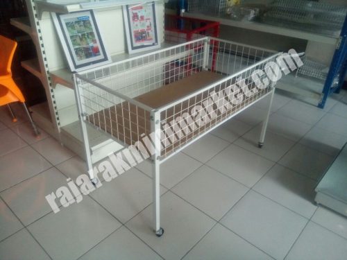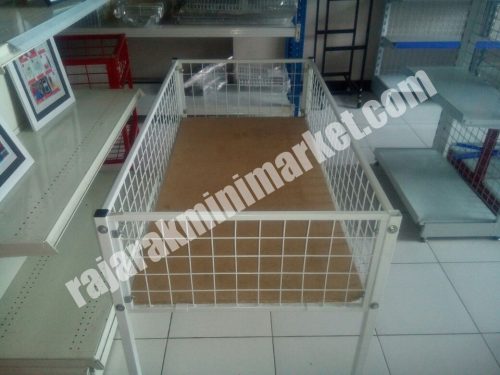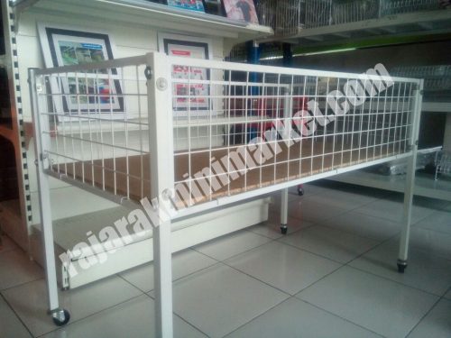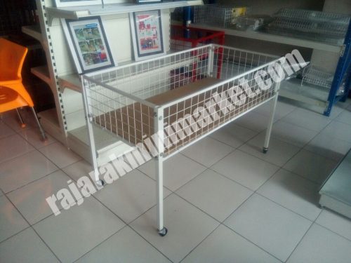 Rak Obral Wiremesh berfungsi sebagai rak obral dengan desain terbuat dari rangkaian kawat wire berwarna putih. dengan model simple dan dapat dirangkai mudah.